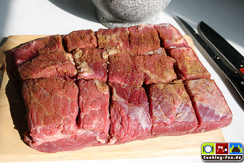 Ach ja, ist auch nicht schlimm, wenn das Fleisch ein Stündchen länger kocht, zwischendurch einfach mal probieren… Die Garzeit hängt von Menge, Dicke und auch dem „Spendertier“ ab. 🙂