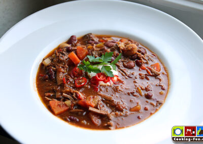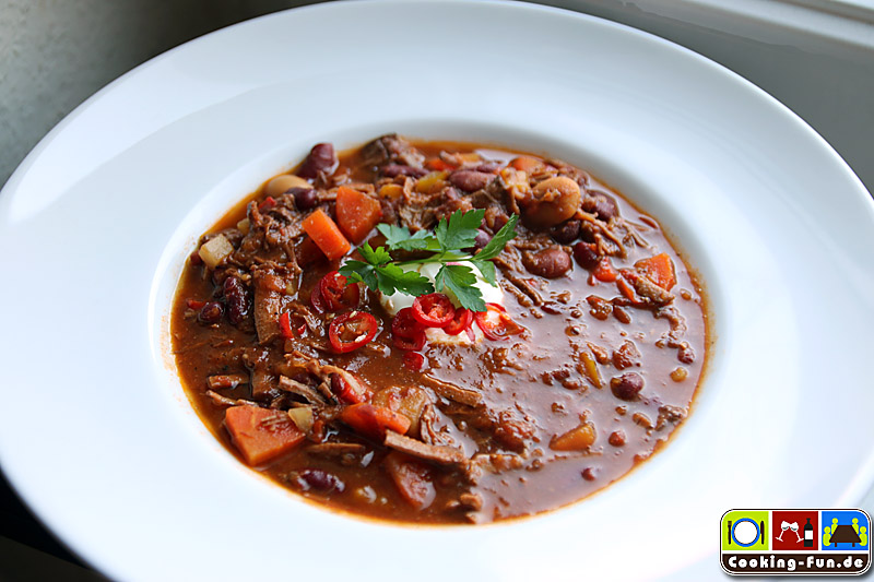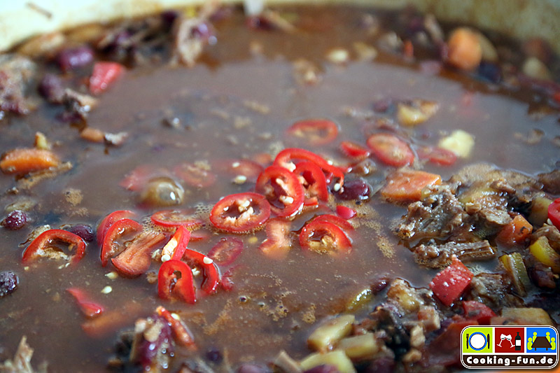 Gestern haben wir in netter Herrenrunde Doppelkopf gespielt und ich als Gastgeber wollte den Jungs mal ordentlich und herzhaft auftischen. Das war eine perfekte Gelegenheit für diesen Chiliansatz. Komisch, irgendwie wollten alle noch eine Portion. Muss wohl geschmeckt haben… 🙂