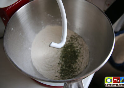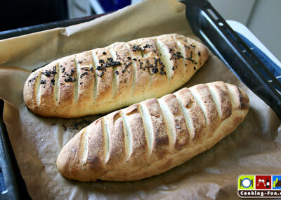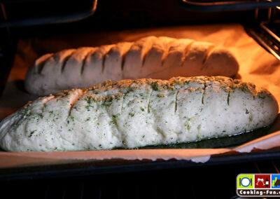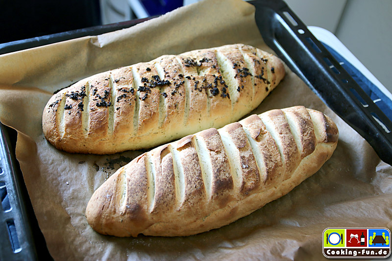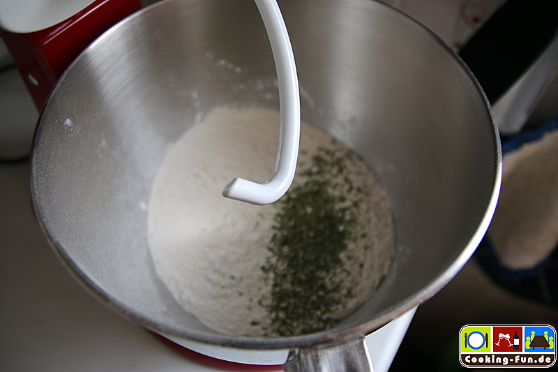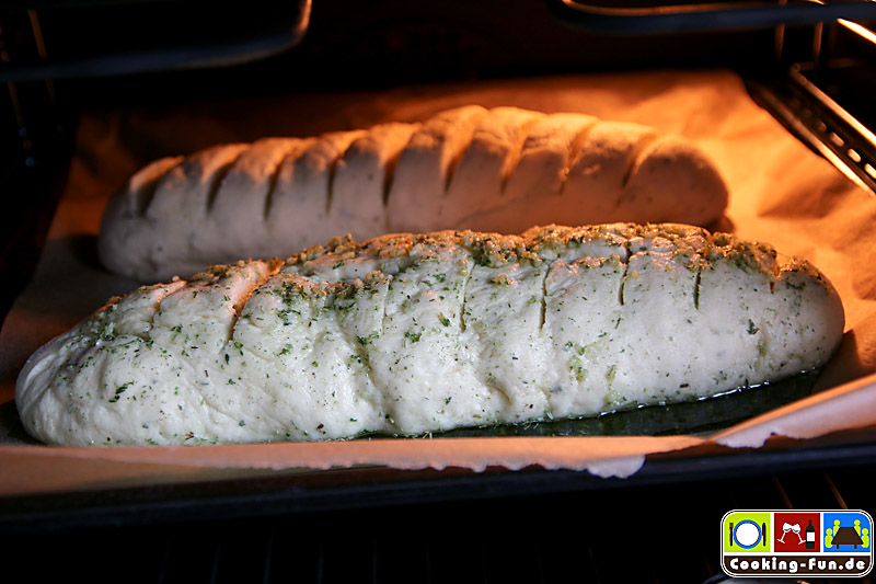 Dazu gibt es schnell selbstgemachtes Weißbrot, wobei ich den Hefeteig mit Oregano und einen guten Schluck Olivenöl versetzt habe und es vor dem Backen zudem mit Knoblauch-/Kräuteröl übergossen habe, um die Aromen des Chilis nochmals aufzugreifen.