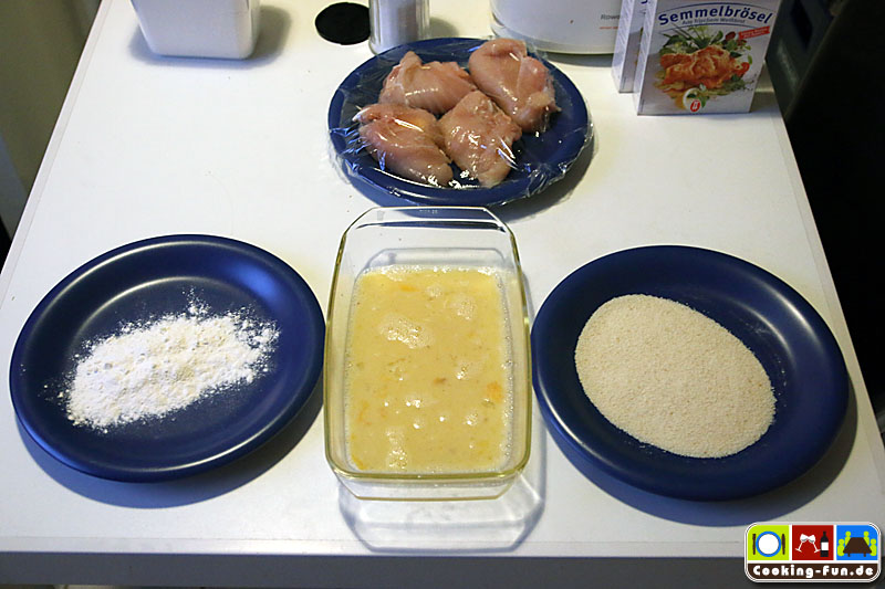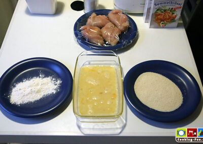 Wer die Panade etwas dicker mag, kann das panierte Fleisch nochmals durch das Ei ziehen und nochmals mit Semmelbröseln überziehen. Ich mach das immer.