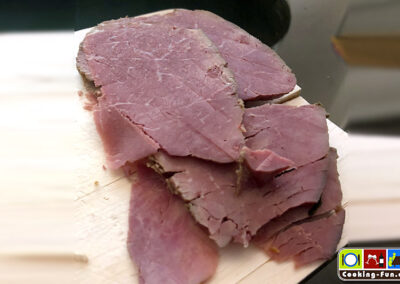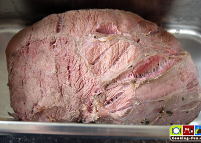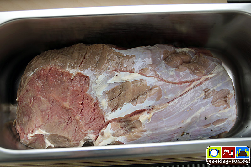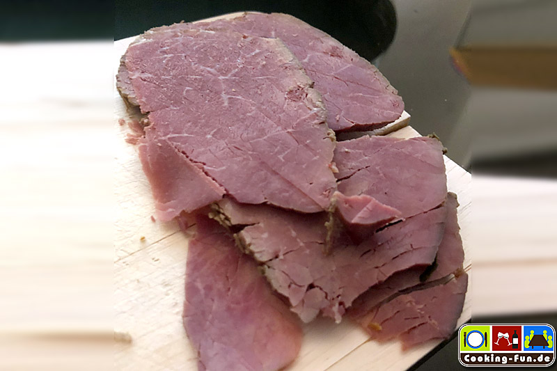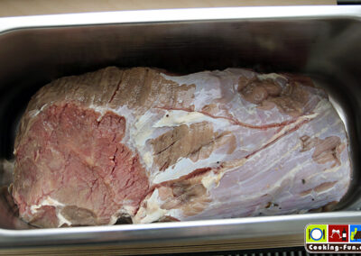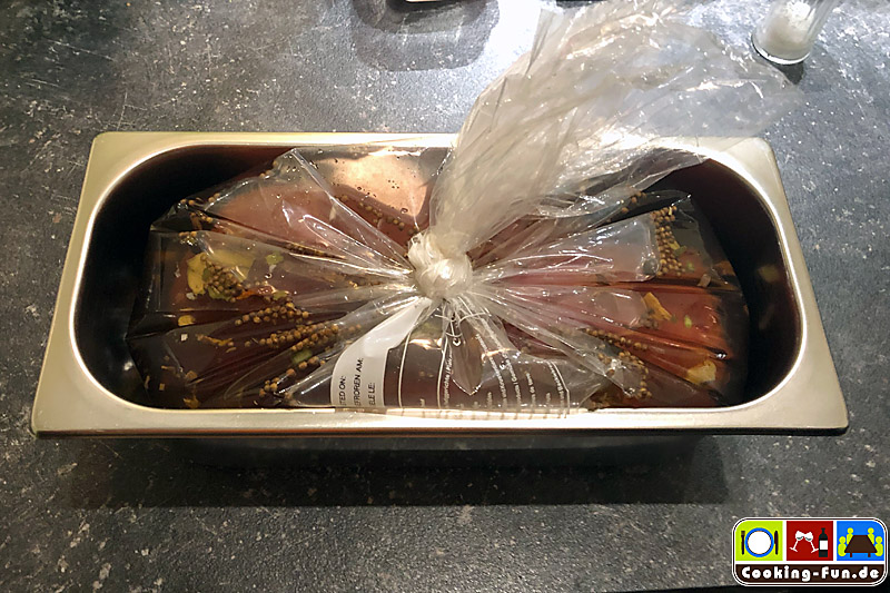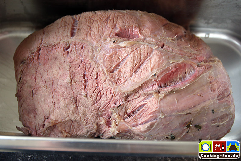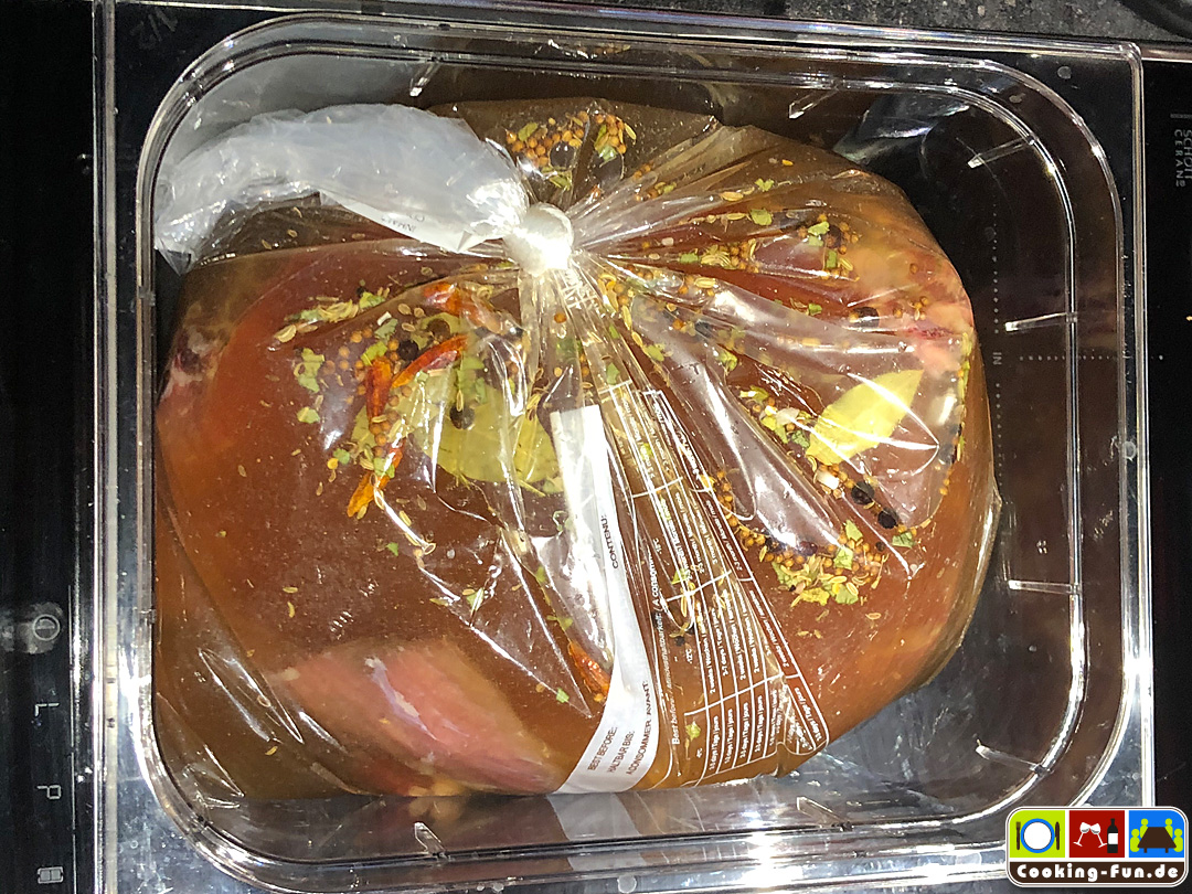 Weiter unten habe ich eine zweite/alternative Zubereitungsart ergänzt, bei der das Fleisch nach dem Pökeln Sous Vide gegart wird…