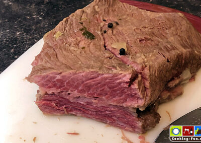 Zum St. Patrick’s Day 2021 habe ich mir wieder – wie oben beschrieben – ein Stück Rind eingelegt und gepökelt. Bei der dann folgenden Zubereitung habe ich mich aber für Sous Vide entschieden.