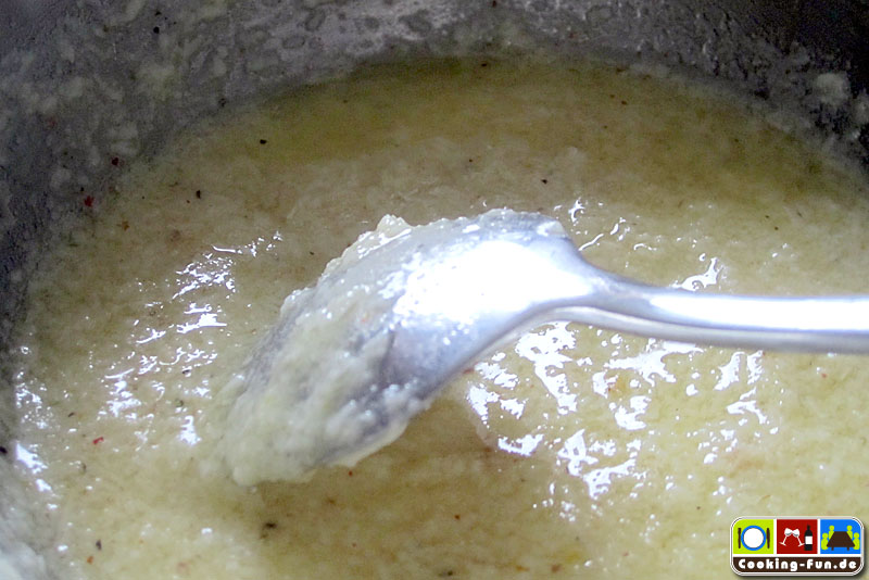 Noch heiß auf den Tellern anrichten und die Parmesanmischung darüber verteilen, ggf. mit Salz und Pfeffer nachwürzen.