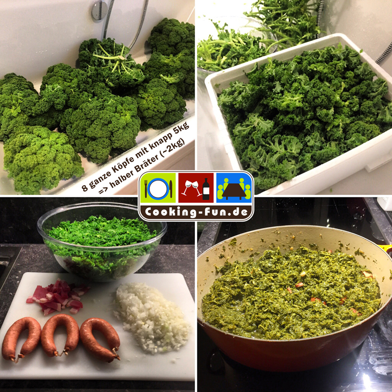 1. Vielen Dank für das tolle Rezept, nun weiß ich endlich, wie man Grünkohl zubereitet, so dass er noch schön intensiv grün ist und nicht so k…braun vor dem Essen wird. Da lohnt sich der Aufwand, ihn selbst zuzubereiten. Wir haben dann Bregenwürstchen aus dem Bioladen ohne Nitritpökelsalz verwendet und das Kassler weggelassen, um den Grünkohl nicht dadurch ungesund zu machen. Da dort viel mehr frische Gewürze in der Wurst sind hat sich der Gesamtgeschmack trotzdem richtig toll entwickelt.