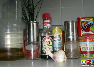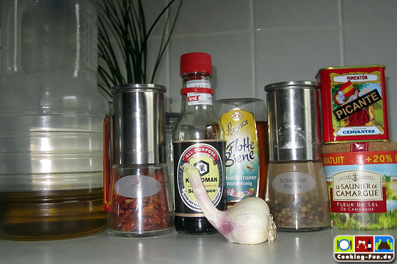 Ganz nach eigenem Gusto kann man die Marinade verändern und unterschiedlichste Geschmäcker befriedigen. Ich hab mich für kräftige, eher asiatische Aromen entschieden.