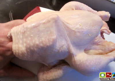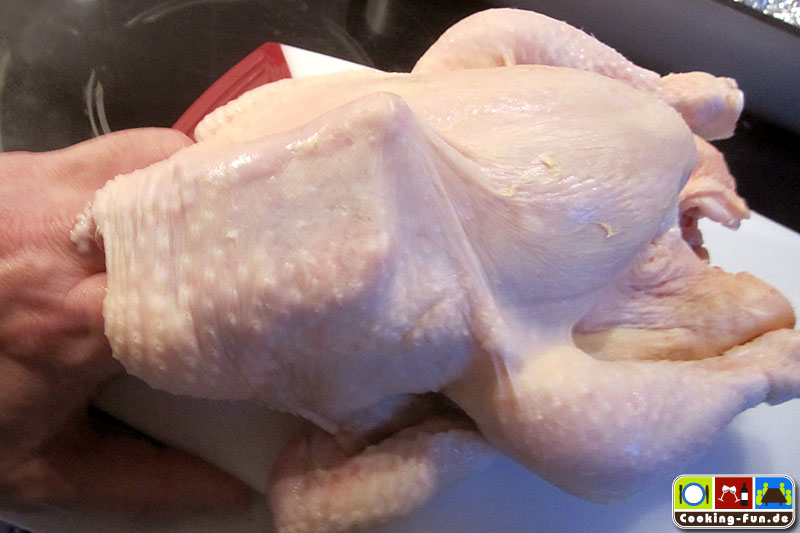 Das Hähnchen innen und außen säubern und trocken tupfen.