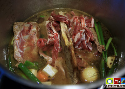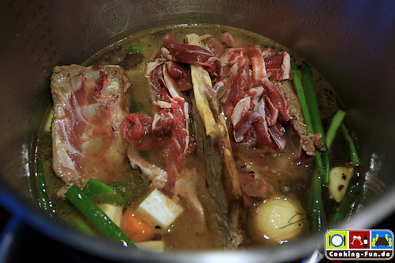 Wenn man Knochen und Zeit hat, gibt es einen Ersatz für die Gemüsebrühe: