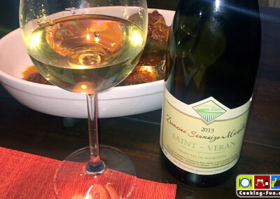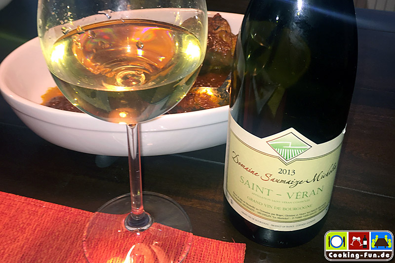 Als Getränk gab es einen großen Weißwein aus der Bourgogne, der dem Safranaroma die Stirn bieten konnte.