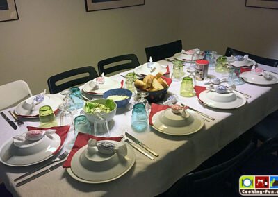 Die folgende Vorspeise kam dann von Susanne und mir. Da wir daheim vorbereitet haben, wollten wir eine kalte Vorspeise servieren. Wir hatten das kulinarische Rezept der Region mit im Sortiment: Pesto alla Genovese. Zusätzlich gab es noch Verdure ripiene – gefüllte Gemüse.