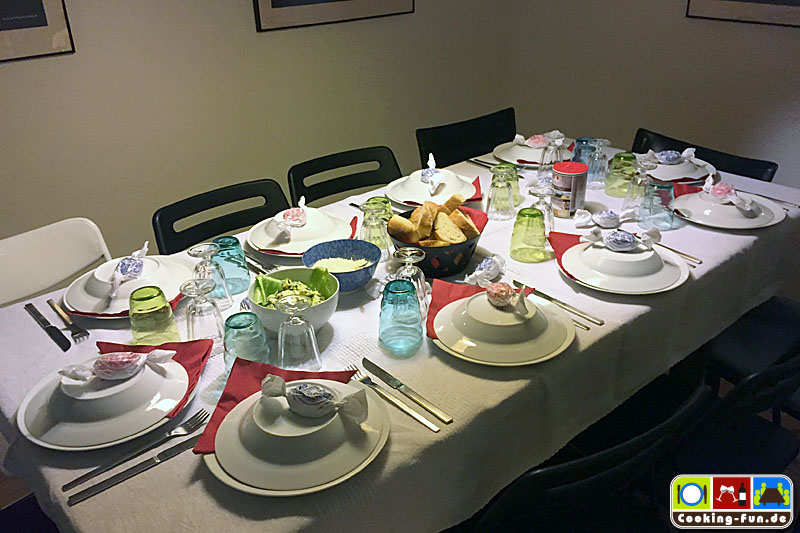 Am gemütlich eingedeckten Tisch erwarteten jeden Besucher ein großes Amaretti-Ding, welches ersten Eindruck auf der Hüfte hinterlassen hat. Aber egal, schmeckt!