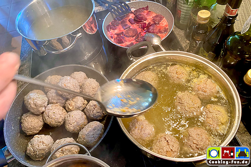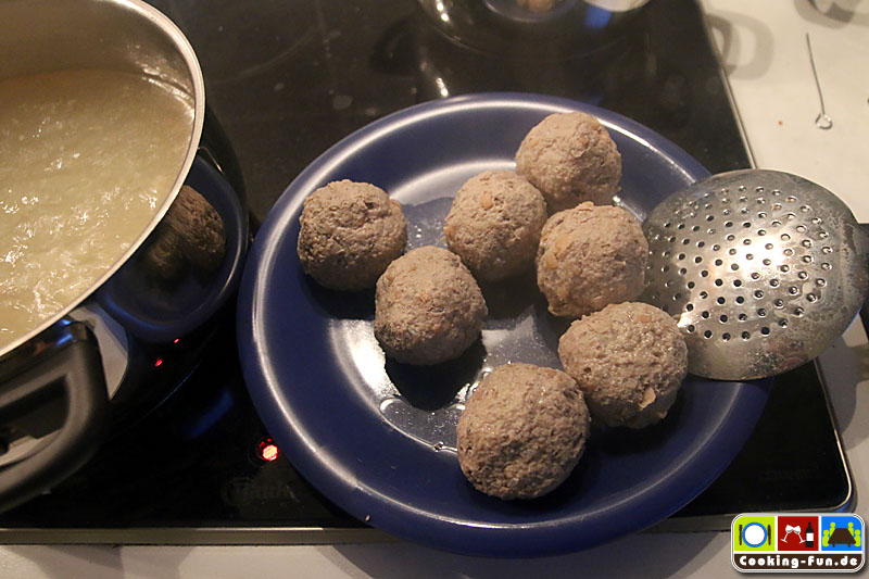 Ach ja: Wenn die Klopse ins Wasser gehen kann man kurz danach auch die Kartoffeln aufsetzen.