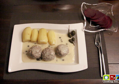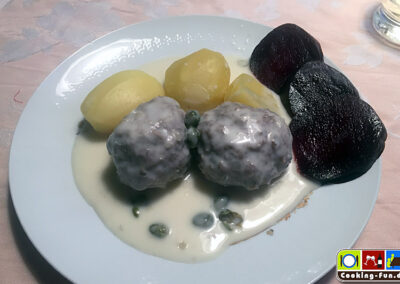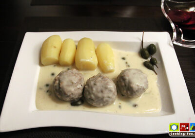 Die Klopse haben wir auch im Rahmen unseres Menüs „Berlin meets Deister in 3-Gängen“ als Hauptgang serviert. Und nochmals im Frühlingsmenü 2017.