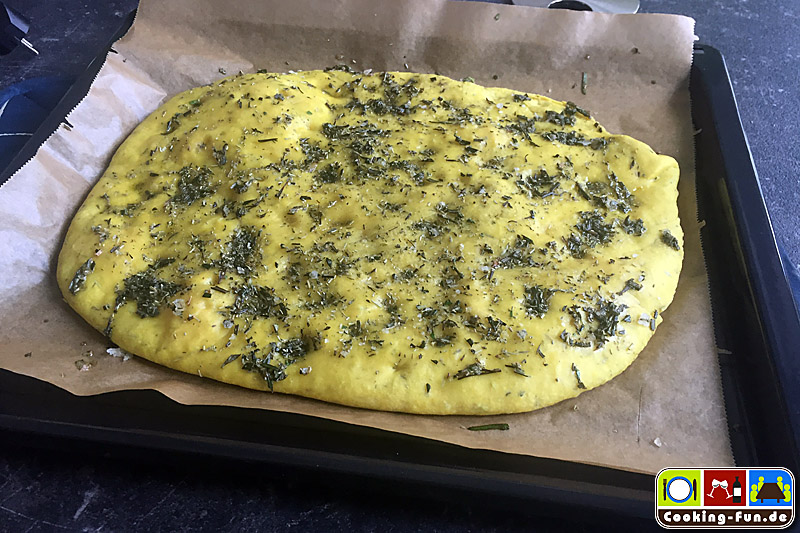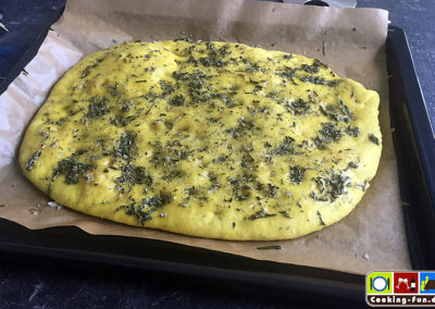 Dazu gab es noch etwas selbstgemachtes Weißbrot in Form von Focaccia.