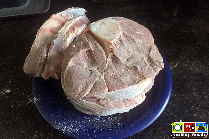 Zugedeckt im Ofen bei 200°C Ober-/Unterhitze schmoren lassen, bis das Fleisch vom Knochen fällt. Wenn Ihr (weniger) Wasser verwendet, die Beinscheiben zwischendurch wenden, damit sie alle Flüssigkeitskontakt bekommen.