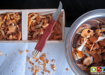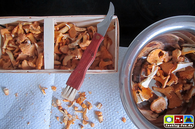 Die Pfifferlinge mit einem Pinsel von Erdresten befreien und putzen.