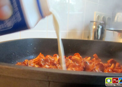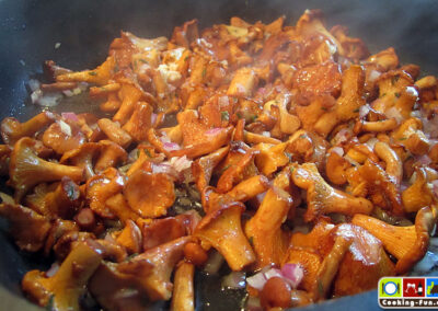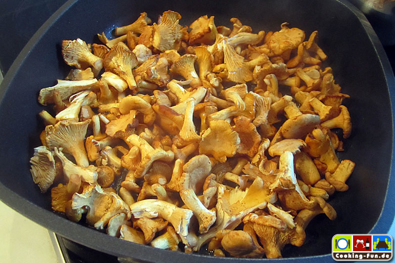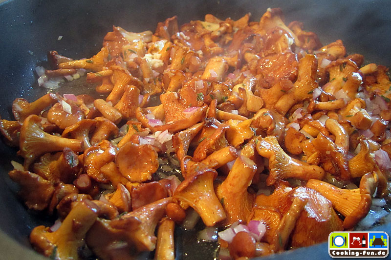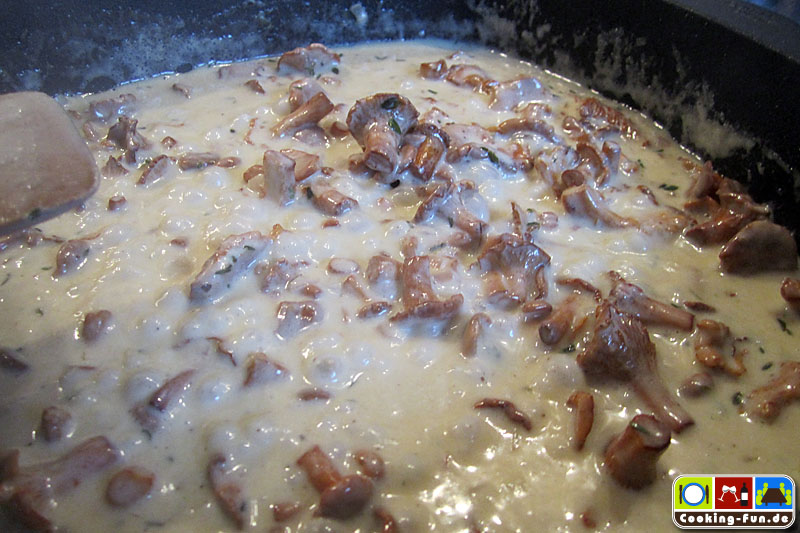 Heute mal vegetarisch. Man kann natürlich anfangs etwas Panchetta-, Speck- oder Schinkenwürfel zugeben, um eine noch herzhaftere Variante zu bekommen. Eigentlich genau mein Ding, aber wenn die Pilze frisch aus dem Wald kommen…