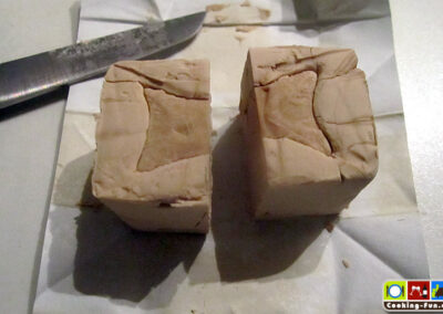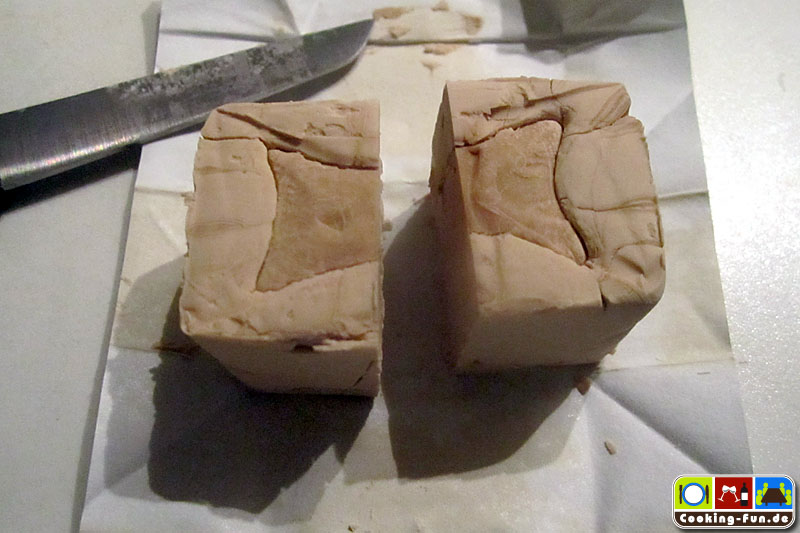 Diese nunmehr zwölf handlicheren Stücke wurden dann schliesslich einzeln verkauft. Sie wogen (aufgerundet) 42 Gramm und waren die ideale Menge für ein Kilo Mehl (obwohl auch teilweise ein Würfel auf 500g Mehl genommen wird).