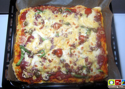 Die Menge reicht für ein Backblech mit nicht ganz dünnem Teig.