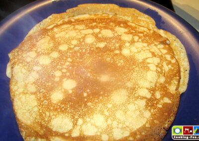 Öl in einer beschichteten Pfanne erhitzen, Teig portionsweise eingießen, dünn verteilen und beidseitig goldgelb backen. Diesen Vorgang so lange wiederholen, bis der Teig aufgebraucht ist.