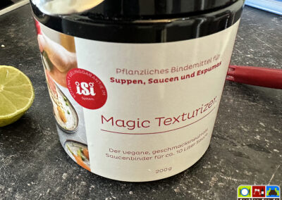 Hier nun aber eine schnelle und einfachere Version der holländischen Sauce unter Zuhilfenahme eines ISI Sahnespenders (Sahnesiphon). Der beigefügte Magic Texturizer (von isi) gibt der Sauce eine bessere Stabilität, es funktioniert aber wohl auch ohne.