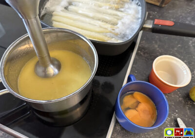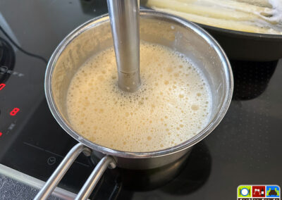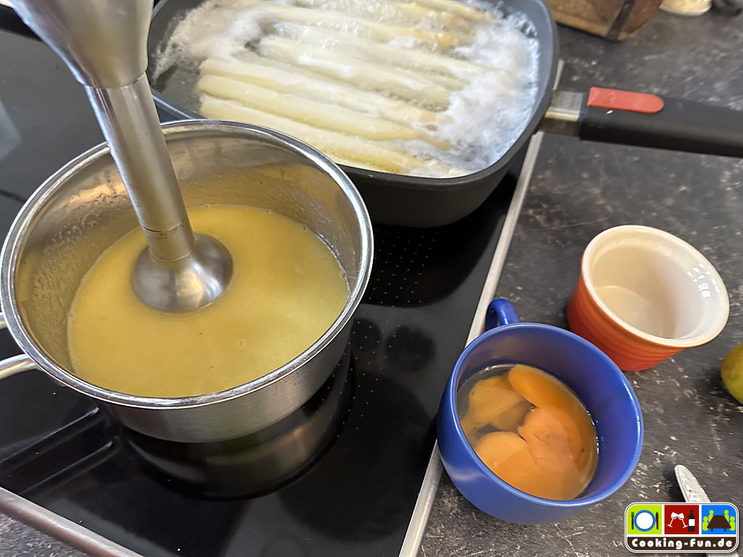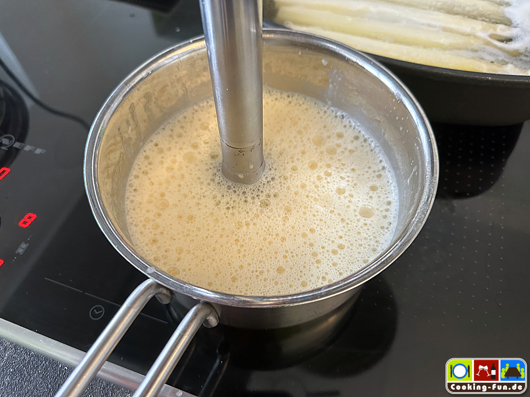 Saucenreste, sofern es sie gibt, könnt Ihr auch wunderbar in eine Spargelcremesuppe auf Basis einer Mehlschwitze einrühren