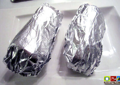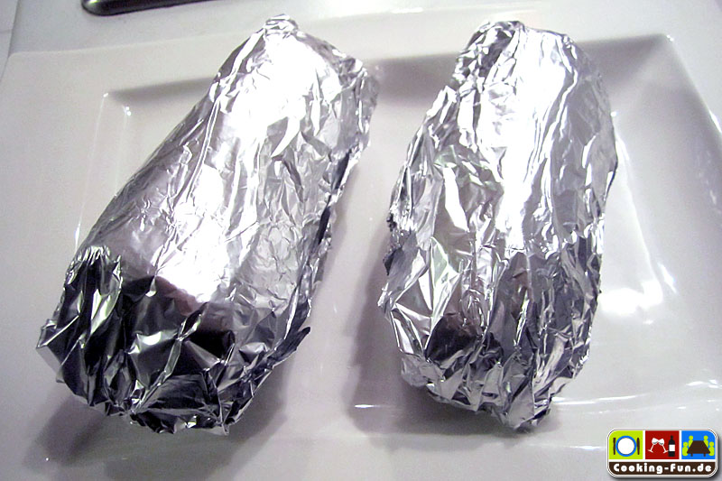 Fleisch in Salz (Achtung: der Speck bringt auch Salz mit) und Pfeffer wälzen und in die Speckscheiben einwickeln. Dabei darauf achten, dass die jeweiligen Nahtstellen alle auf einer Seite sind.