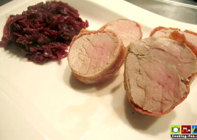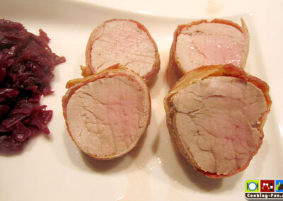Schweinefilet ist herrlich mageres Fleisch, das durch den Speck vorm Austrocknen geschützt und geschmacklich unterstrichen wird.