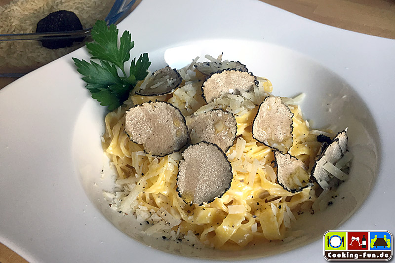 Ach ja: Wenn man sich schon mal einen Trüffel gönnt, dann macht die Nudeln selbst oder kauft wirklich gute, frische Qualität.