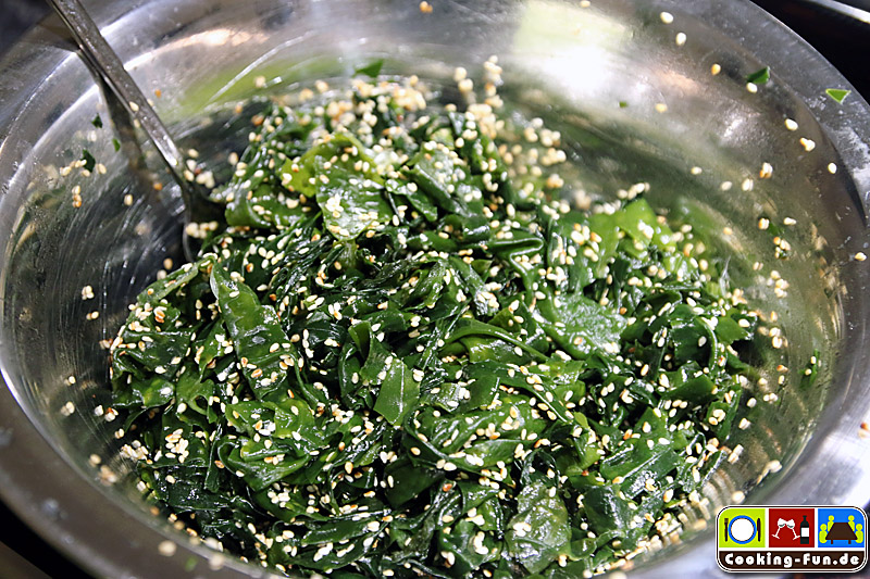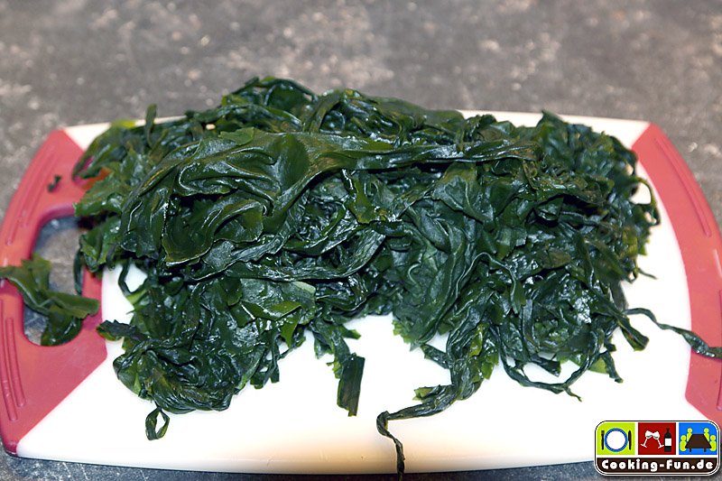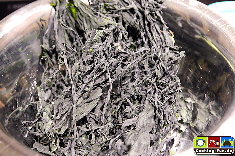 Wenn Euch die Algen zu dick oder zu lang sind, gegebenenfalls in gefälligere Streifen schneiden.